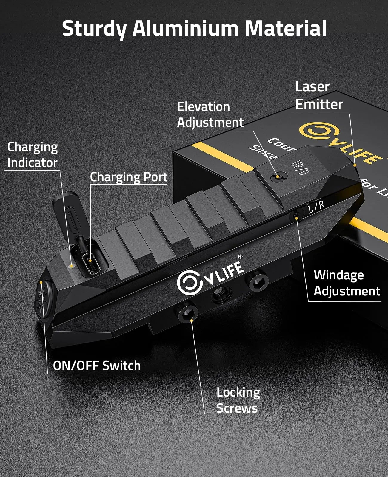 Robustní hliníková konstrukce: Tento laserový zaměřovač, vyrobený z vysoce kvalitního hliníku, je navržen tak, aby odolal častému používání a zároveň si zachoval přesnost i po vystřelení několika ran. Laserový zaměřovač Picatinny je odolný proti pádu z výšky 1,5 m a vodotěsný podle stupně krytí IPX4.
