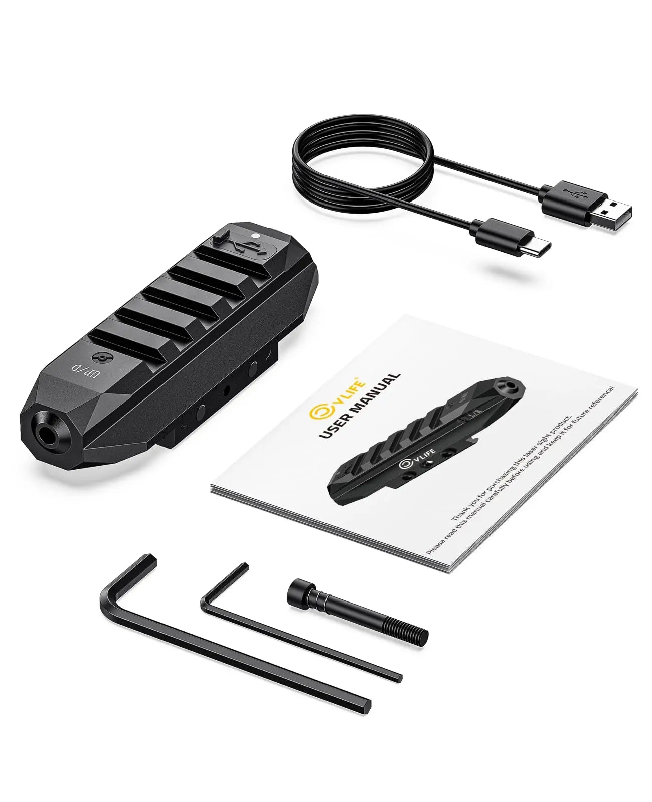 Vysoce viditelný laserový zaměřovač: Laser třídy IIIA, maximální výkon <5 mW. Tento zelený laser pro zbraně má vlnovou délku 522 nm, která dosahuje 200 m za denního světla a může dosáhnout až 2000 m za slabého osvětlení nebo v noci.